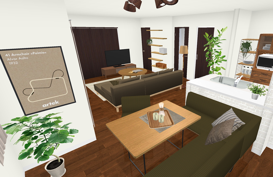 テレビの位置を変更したパターンを、2種類作成いたしました。