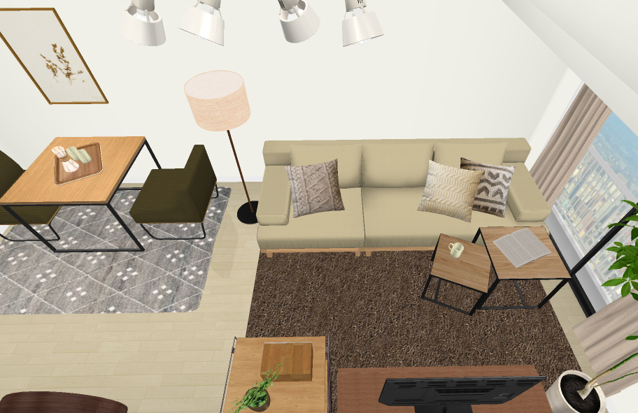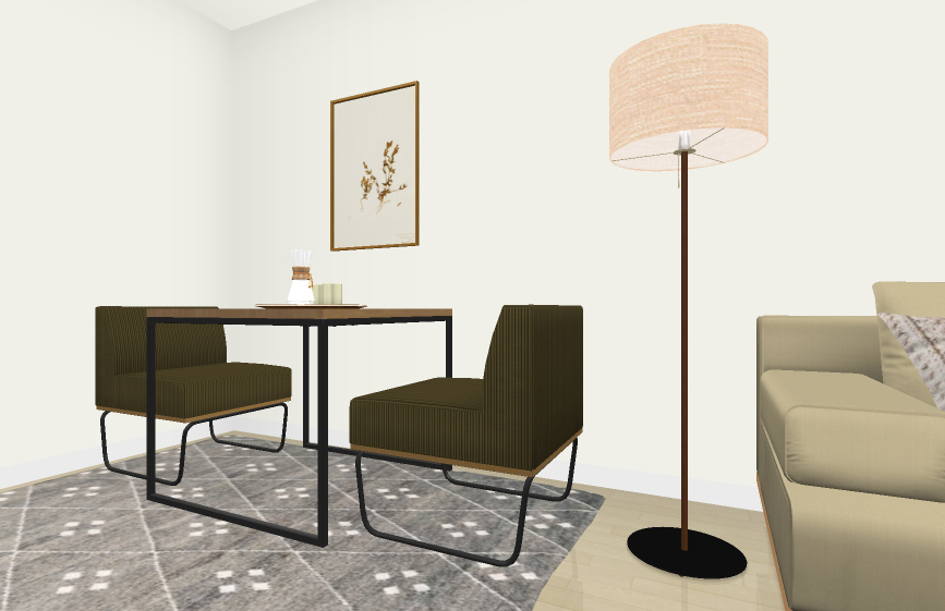 | 提案に含めて欲しい商品 | ・HEMPLENのフロアライトを持っているので、それにマッチするような間接照明 ・WIRY下に設置するラグ、床暖房OKなものを希望しています |