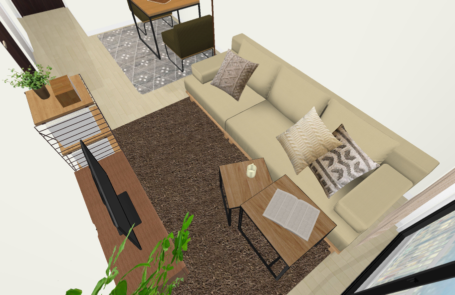 ダイニングとソファーをしっかり分けて、レイアウトいたしました。