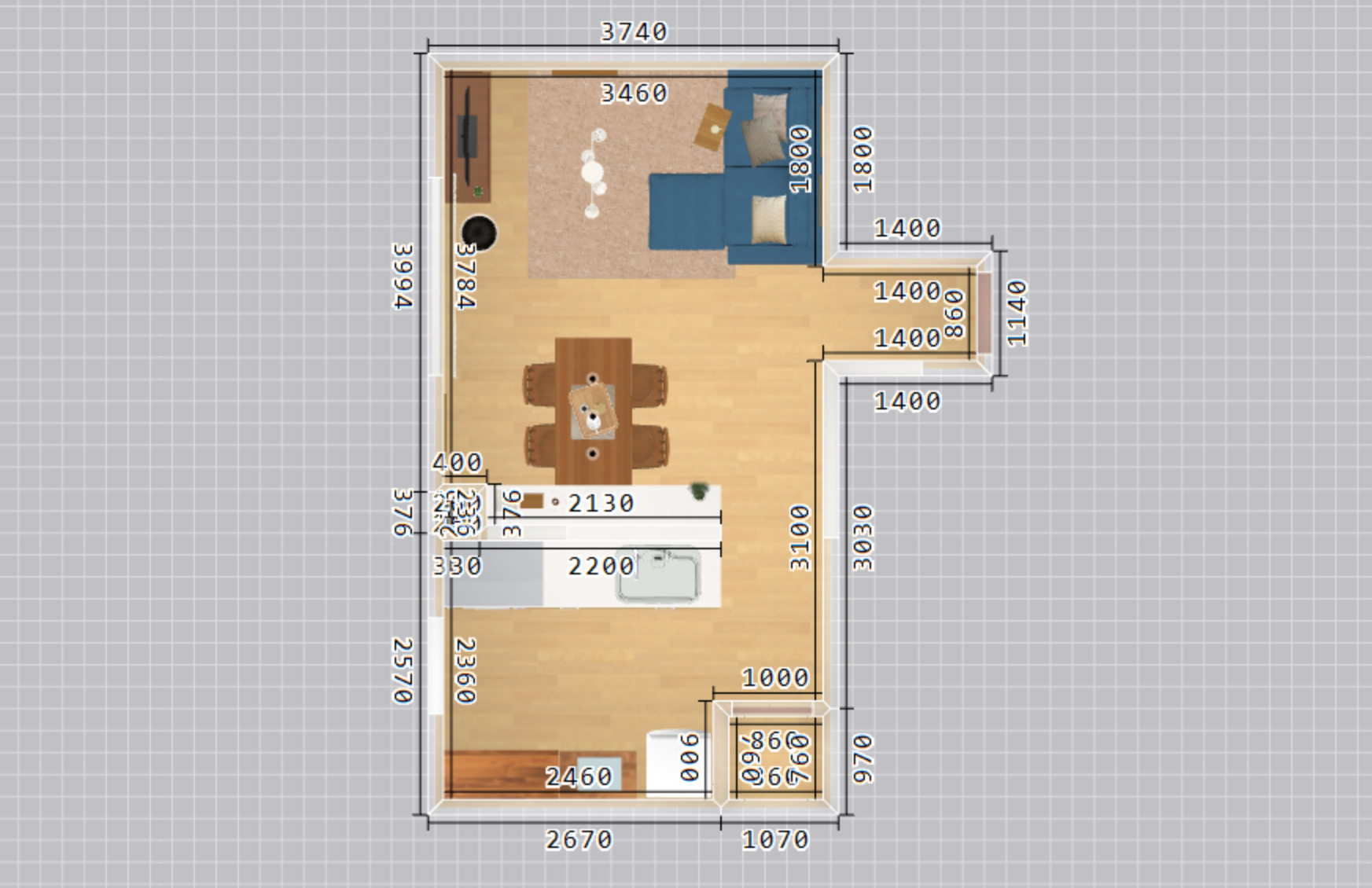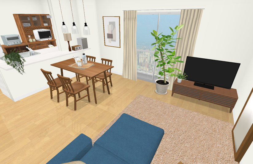 今回、ご希望の家具はキッチン収納とカーテンでしたため、大きなレイアウトの変更は行っておりません。