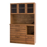 オープンカウンターやスライド棚など、家電を置けるスペースが充実していて、かつ引き出し収納やガラスキャビネットなど、