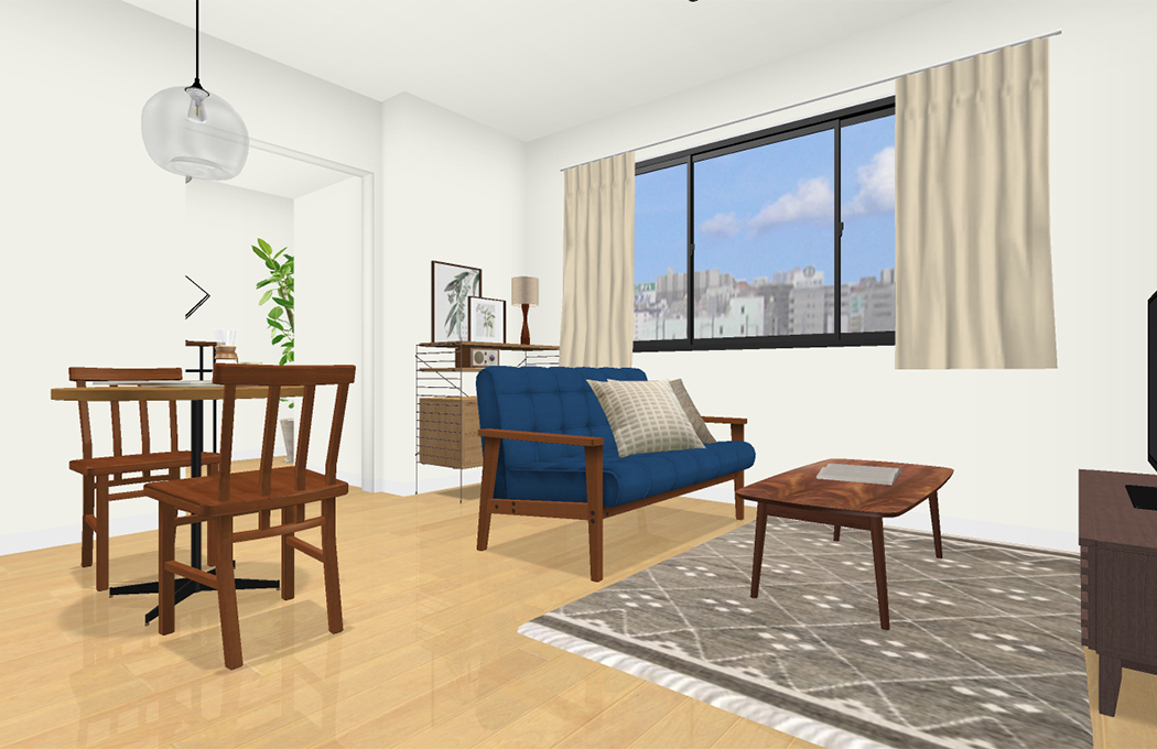 ご購入いただいております家具が、ブラウンをベースとされておりましたため、今回のコーディネートもブラウンカラーに馴染むご提案をいたします。