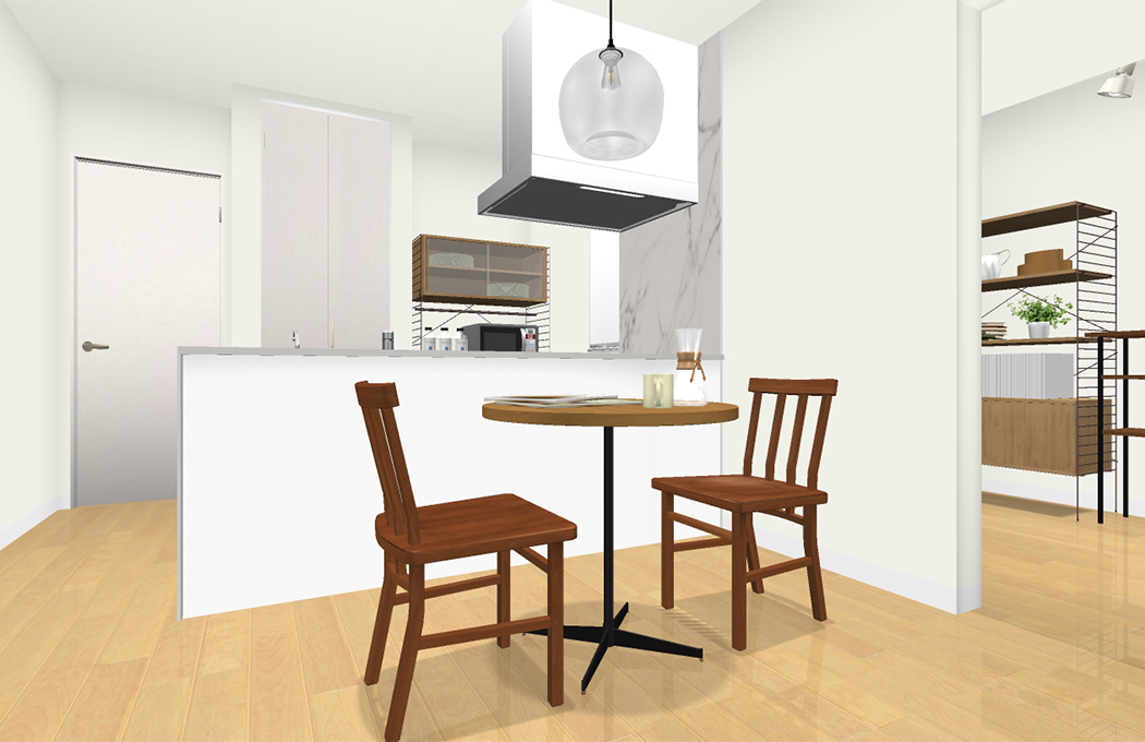 円形のテーブルにすることで、見た目の圧迫感を軽減するだけではなく、横を通る時にも角が邪魔にならず、四角形よりスムーズに動くことができます。