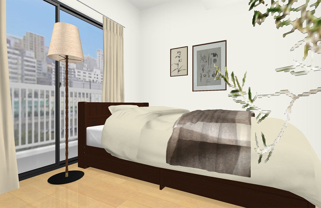 洋室1の寝室には、ご購入いただいておりますベッドをレイアウトいたしました。