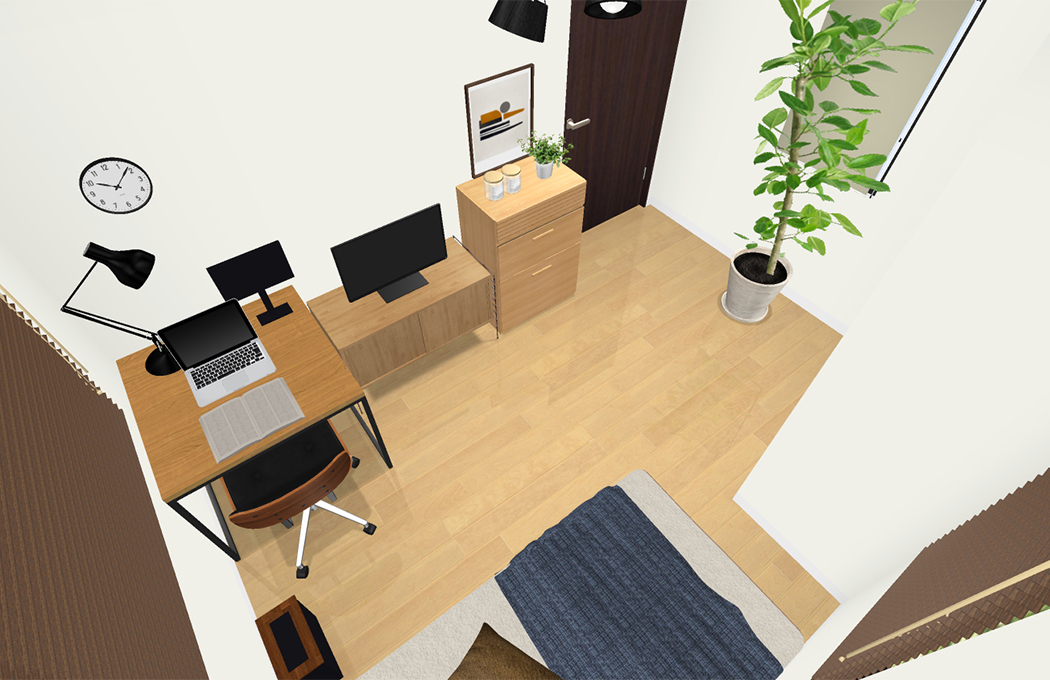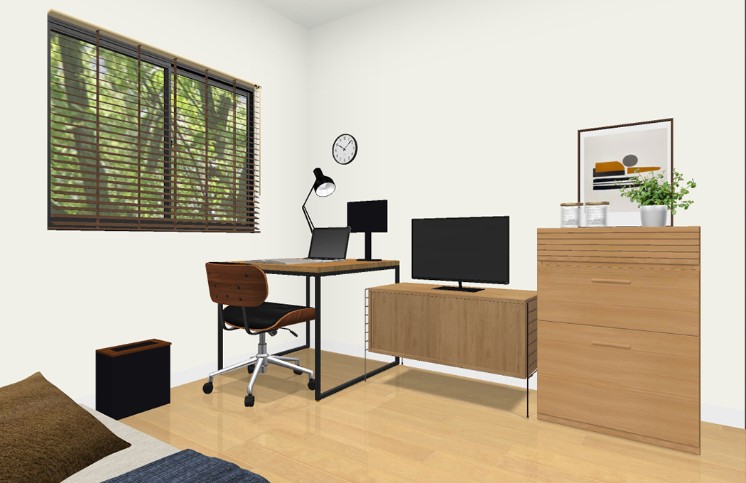 日中の大半をこちらのお部屋で過ごされるとのことでしたので、デスク周りの環境を重視いたしました。