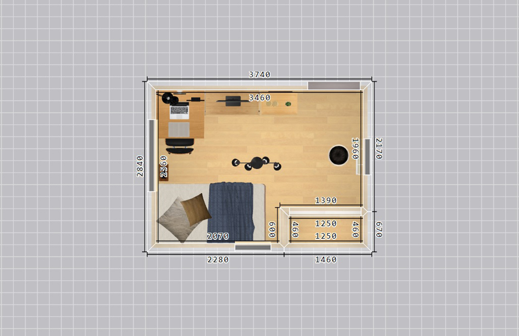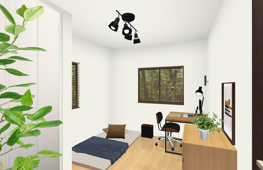 | 伝えたい内容など | イメージは、大人の落ち着いた書斎兼寝室です。 リモートワークになり、一日の大半をこの部屋で過ごすことが多くなりました。 昼は仕事に集中出来て、夜は間接照明を使ってテレビを見ながらくつろげる部屋にしたいです。 カラーはオータム系でお願いします。 |