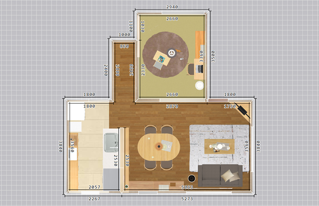円形・楕円形時ともに、テーブル周りの動線も十分に確保できており、問題なく配置できました。