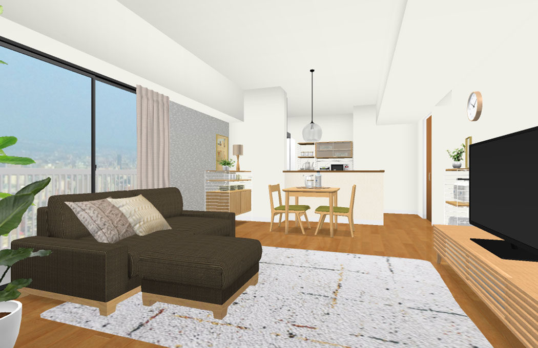 ソファやテレビボード、ダイニングの位置は現在のレイアウトのままにいたしております。