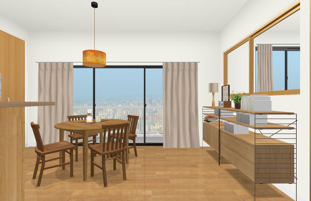 ダイニングやリビングで必要な日用品を収納でき、またお気に入りの小物たち、観葉植物をディスプレイできます。