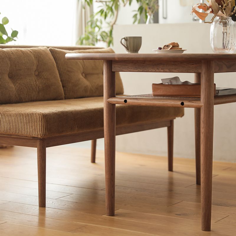 落ち着いたブラウンカラーと、無垢材のようなあたたかみ溢れる意匠の天板が、和テイストなお部屋とも相性抜群です。