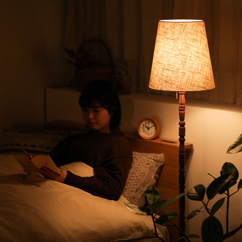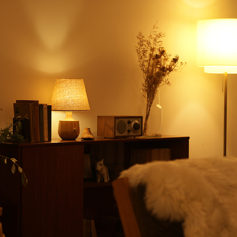 天然素材のシェードから広がる柔らかな光が、就寝前のひとときを優しく包み込みます。