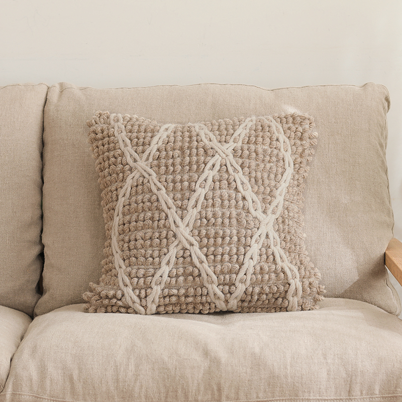 今回は、お客様のような落ち着きのある印象の空間にぴったりのクッションをお選びしました。