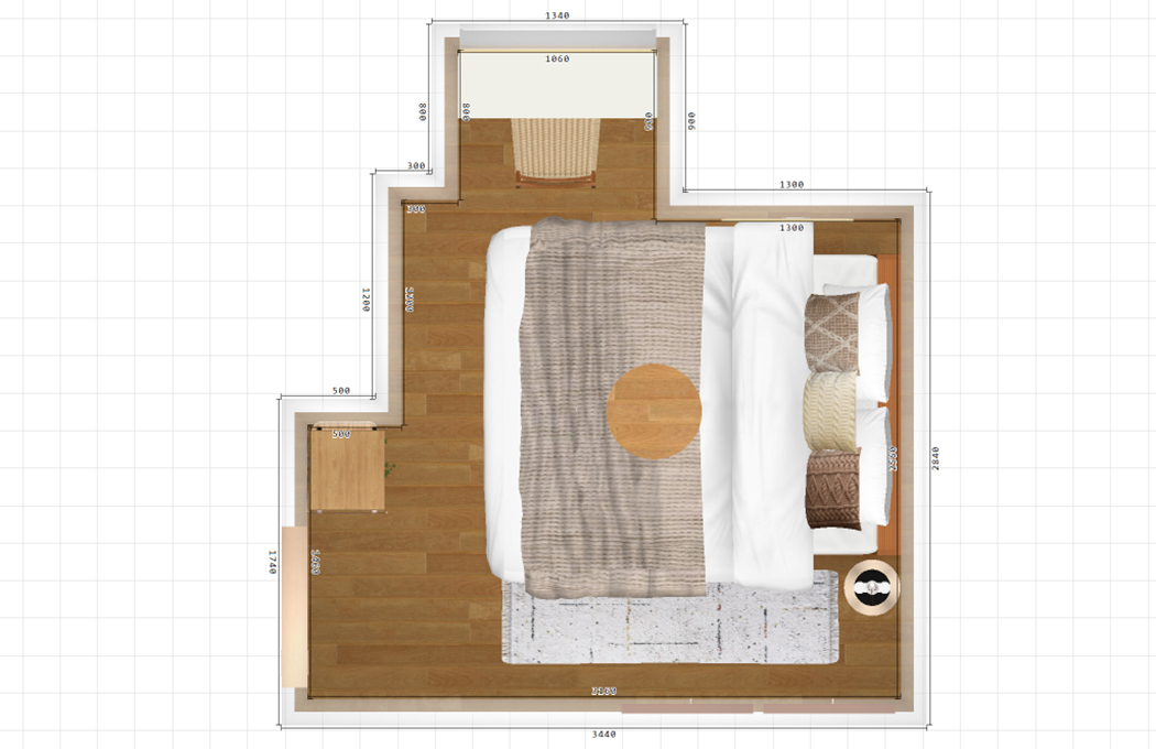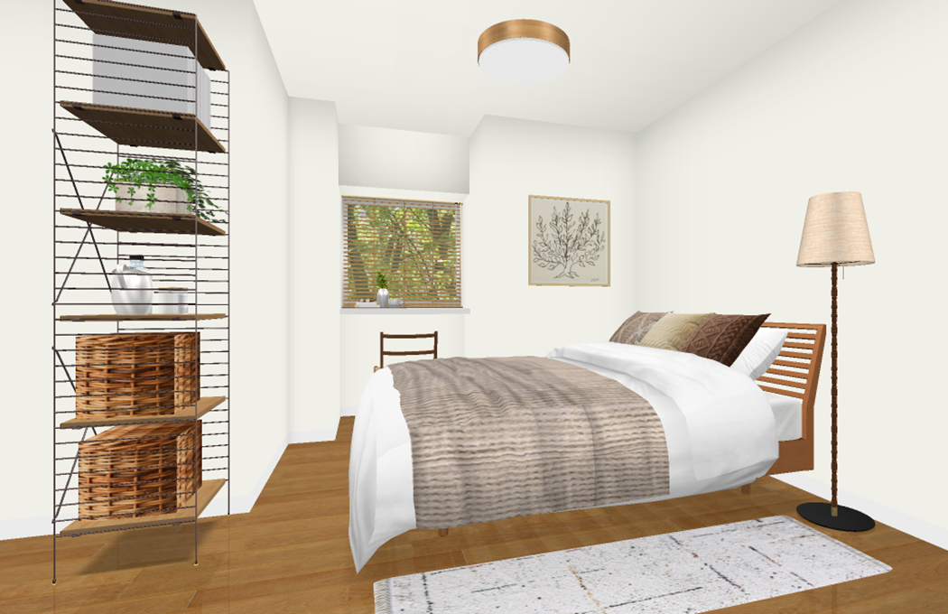 ベッドルームは、限られた空間の中でも「収納力」と「リラックス空間」を叶えられるレイアウトといたしました。
