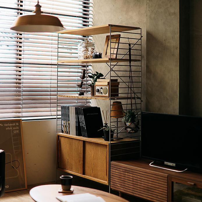 自由に伸縮いただける機能性だけでなく、オープンタイプのため、お気に入りのアイテムや本などをお好きな場所にたっぷりと片付けられる収納力も魅力です。