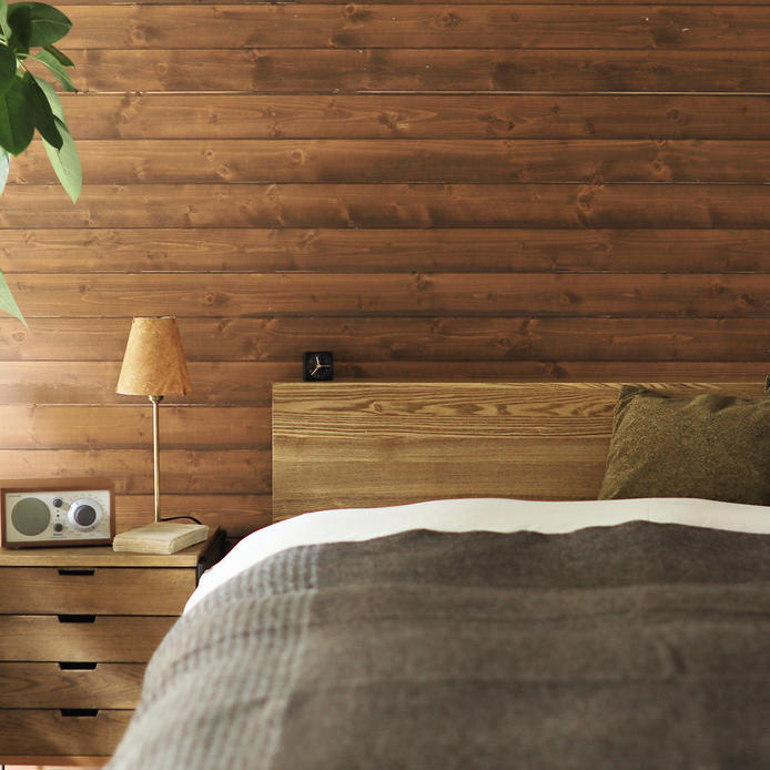 1日の終りにほっとくつろげる、木のあたたかみを感じるベッドルーム