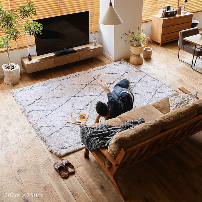 ソファーに合わせた【 ラグマット BIANCA DIA 四角形タイプ 】も、200cm×250cmと大きなサイズを合わせています。