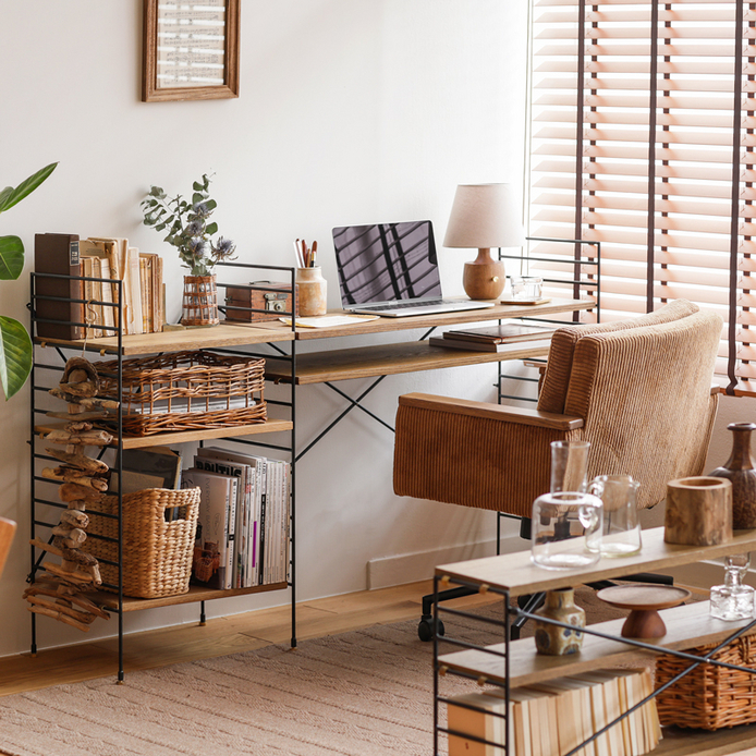 たくさんのアイテムを収納するためのシェルフづかいはもちろん、ハンガーラックやデスクなど、多目的にご利用いただけます。