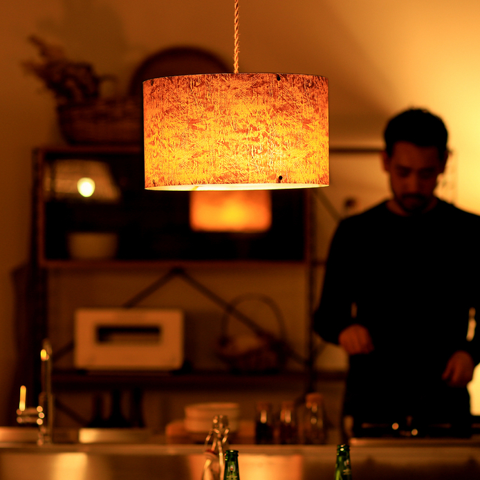 まるでカーフレザーのような有機的な素材感のシェードは、特殊加工した紙でできています。