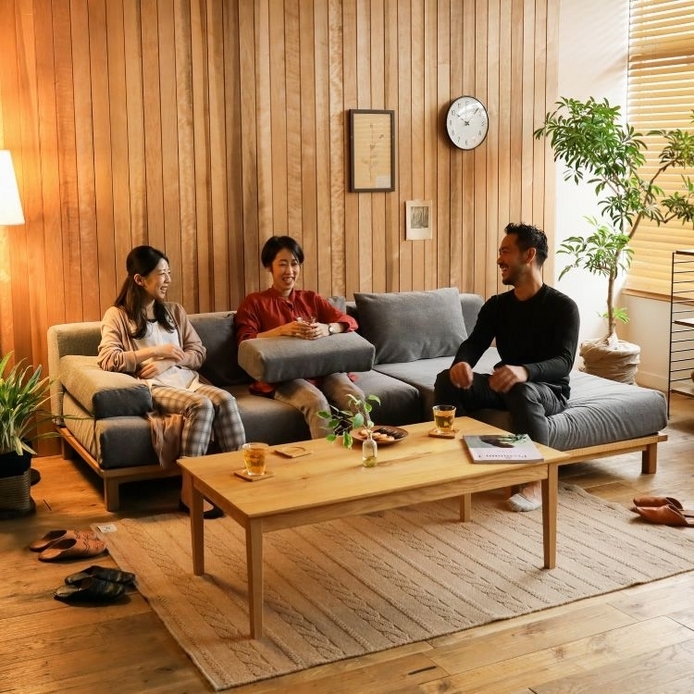 幅240cmと、大きなサイズのL字型ソファーですが、背の低い造りなので、圧迫感も感じにくいデザインです。