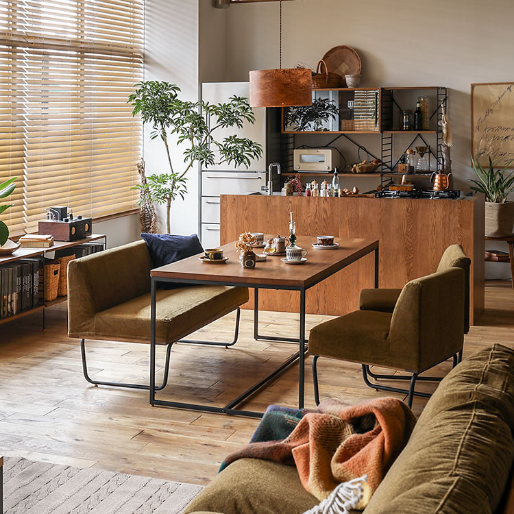 カラー・デザイン・素材 3つの要素をかけ合わせ、ナチュラルヴィンテージな空間に。