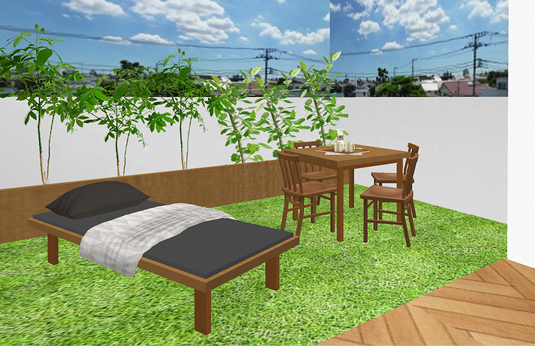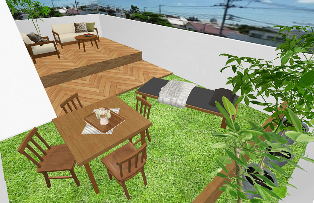せっかくの広々とした屋上スペースなので、気候や天気の良い日に、ちょっとした軽食やおやつの時間を楽しむことができるテーブルスペースがあると、ピクニックに来たような非日常をお楽しみいただそうです。
