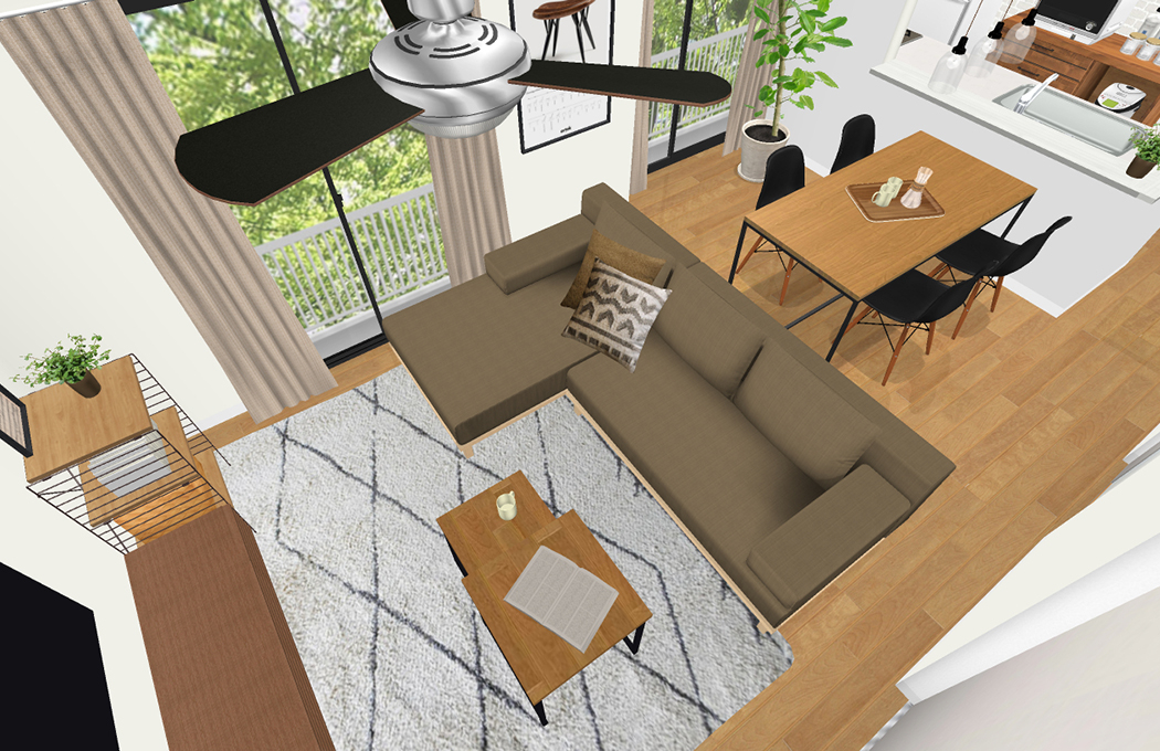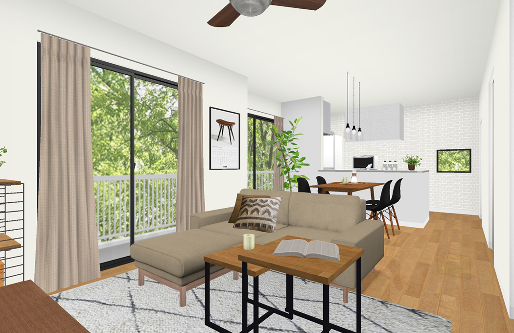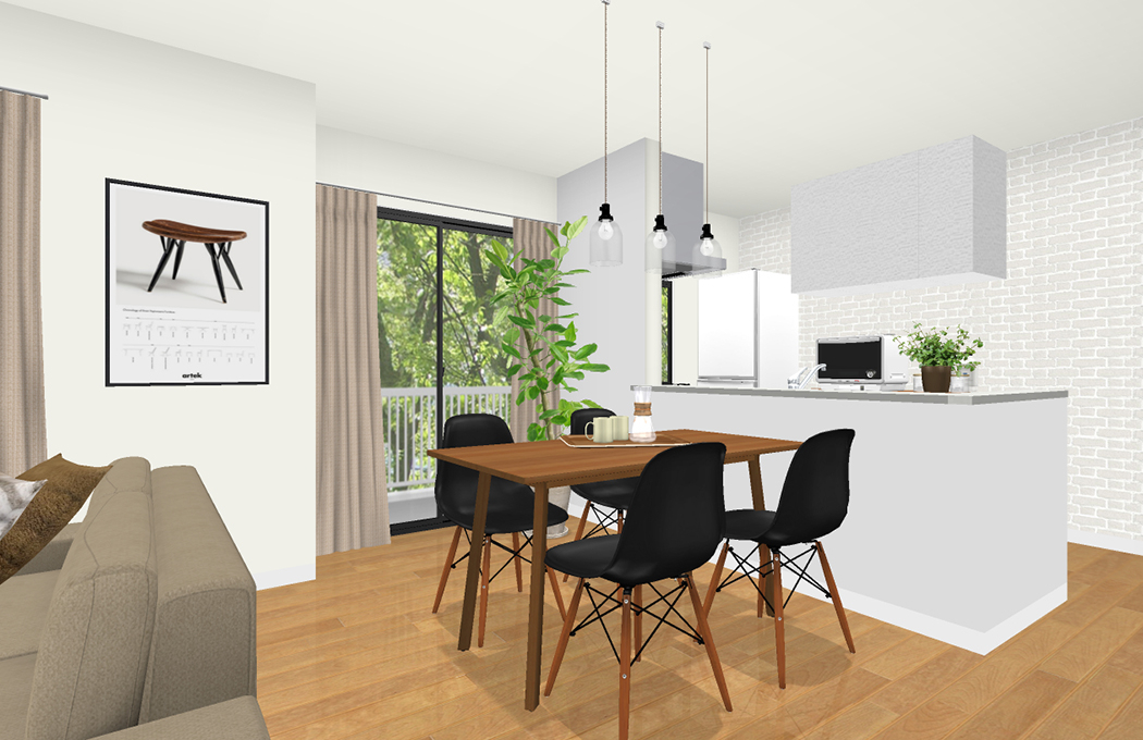 ご希望の商品の場合、生活動線を考えると厳しい箇所がございましたため、ソファとダイニングは2つのパターンをご案内させていただきます。