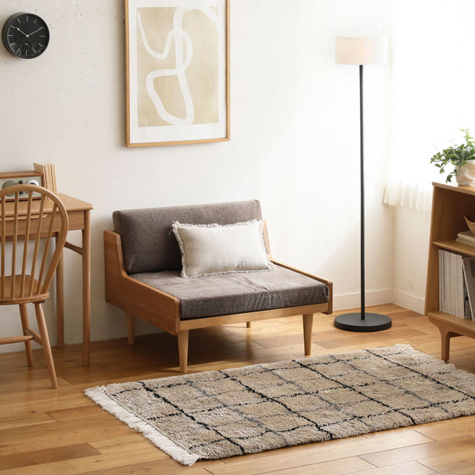 ベースはブラックですが、木製部分がナチュラルカラーなので、明るい色味のお部屋にもよく合います。ポンとひとつ置くだけで、空間をぐっと引き締めてくれるんです。