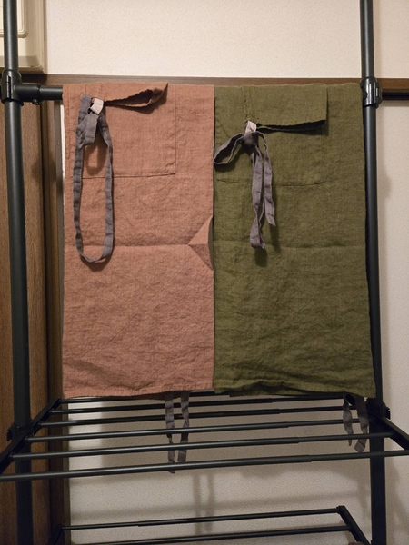 このエプロンの素材は、リネン100%。リネンは天然素材の中でも、特に耐久性に優れています。濡れるほどに強さが増すので、気兼ねなくじゃぶじゃぶ洗っていただくことができます。