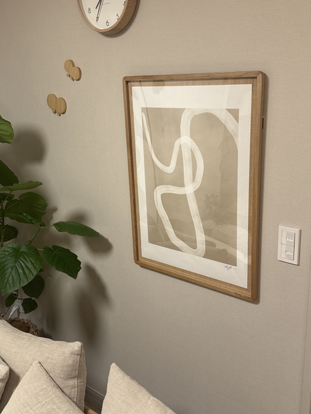 リセノで購入したアートとともに飾ってます!リセノのYouTubeのフレームの飾り方を参考にしたら、上手にかけられました!