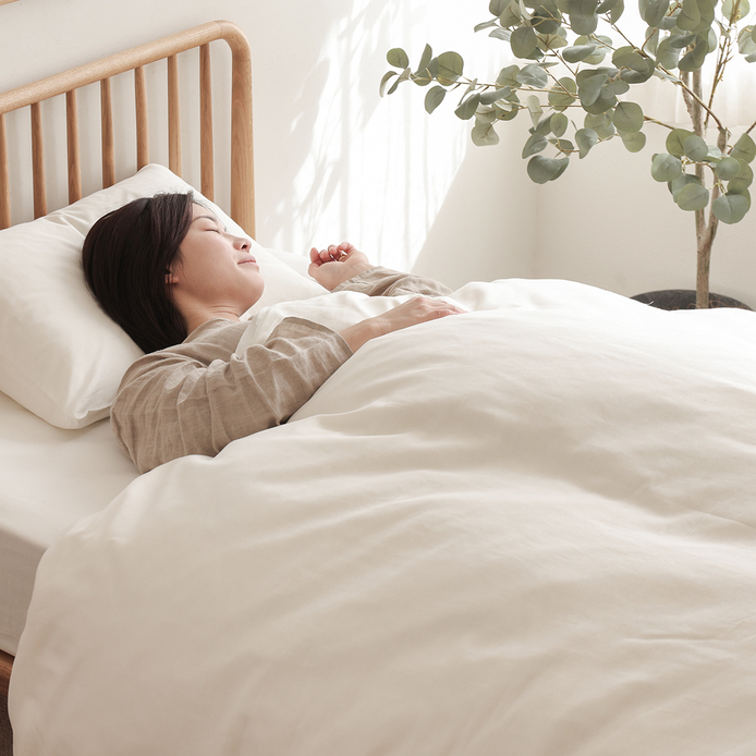 お客さまから「別の寝具カバーに変えて、DOUBLE GAUZEのすごさに初めて気づきました」というお声をいただくほど、オールシーズン快適に使えます。