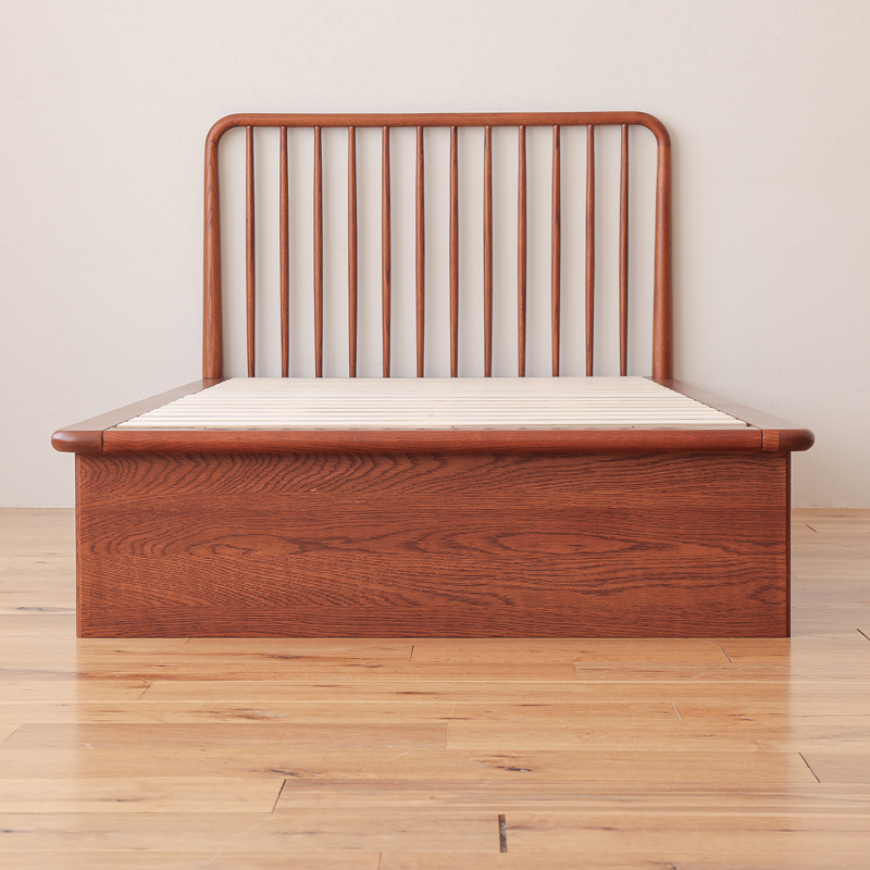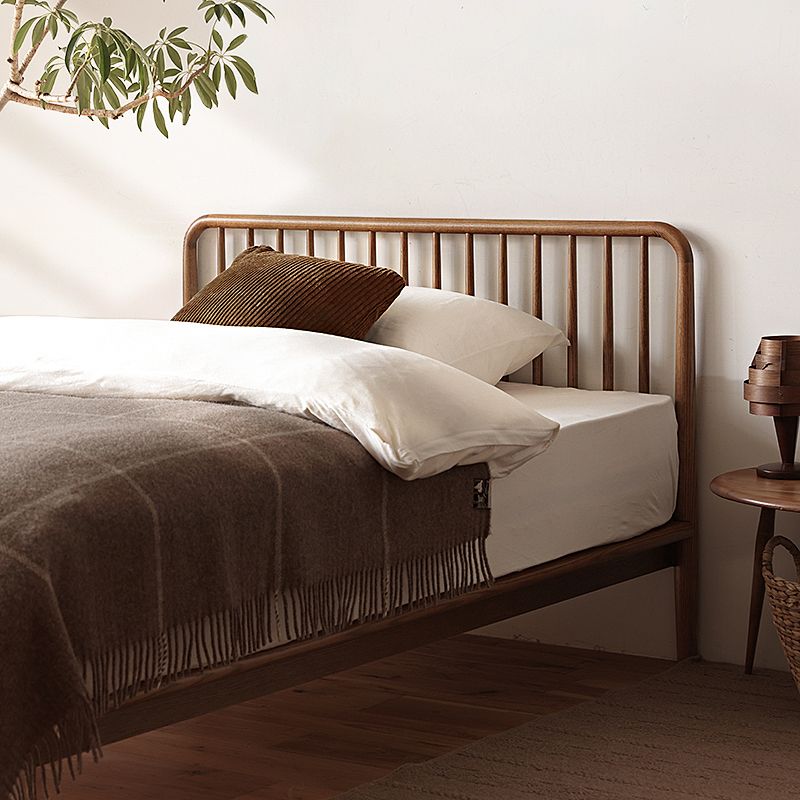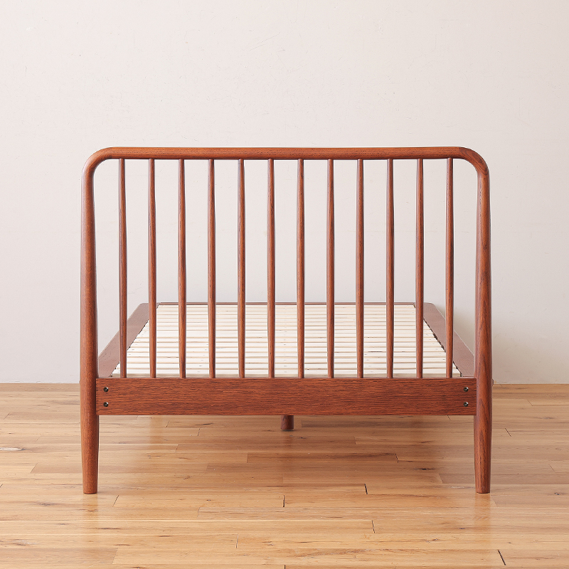 オーク材を贅沢に使い、なめらかなカーブを削り出すことで、北欧黄金期のヴィンテージベッドと変わらぬ美しさを作り上げました。