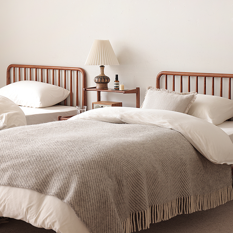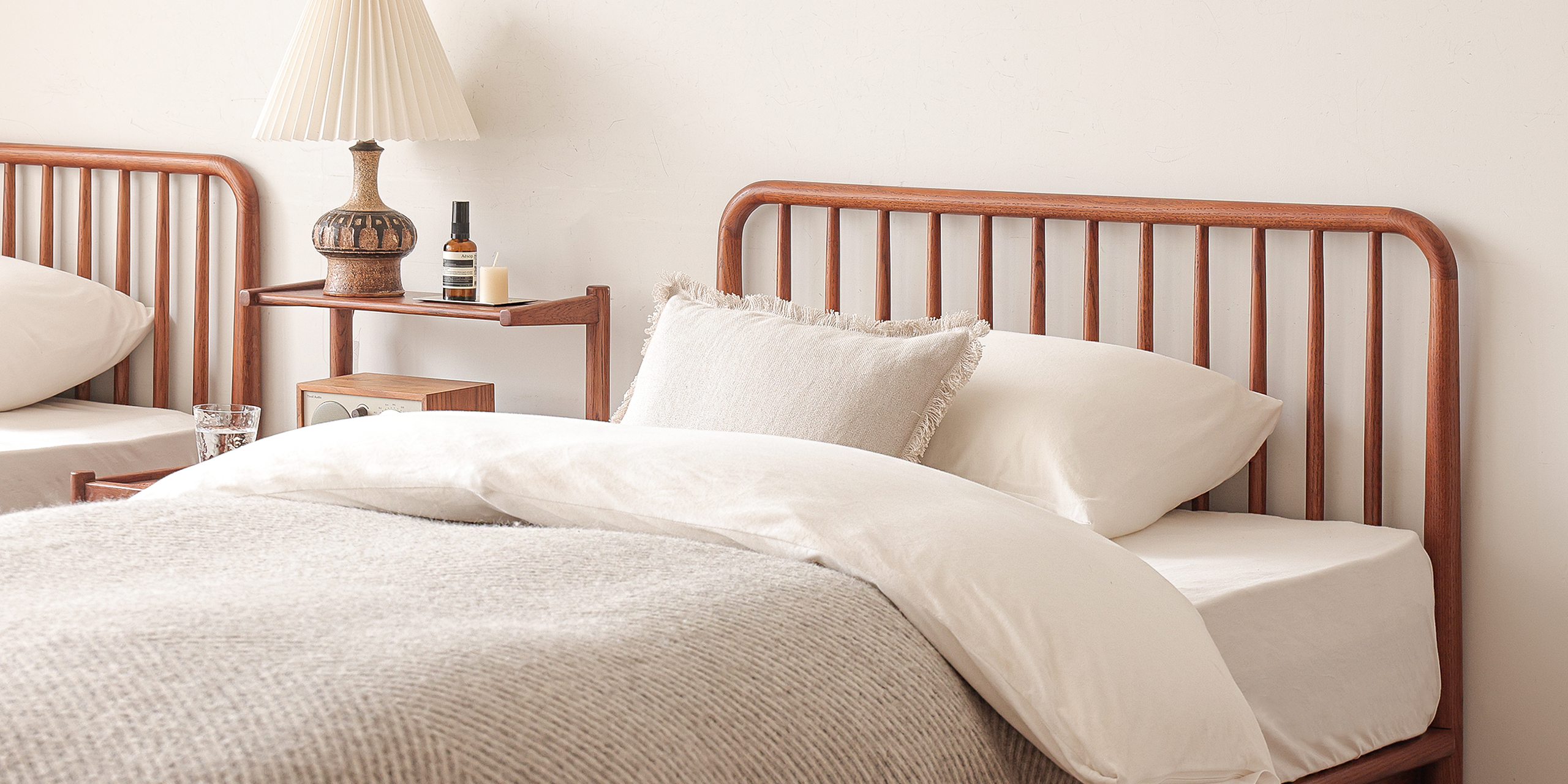 これにより、ベッド全体で統一感が生まれ、美しく安定した見心地を実現しています。