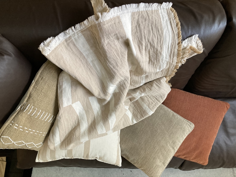 春夏には、オーガニックコットン100%の「thymeシリーズ」や、デザインが特徴的な「Dahliaシリーズ」のブランケットとクッションカバーを。揃えていただくことで、より統一感のあるコーディネートが手軽に叶います。