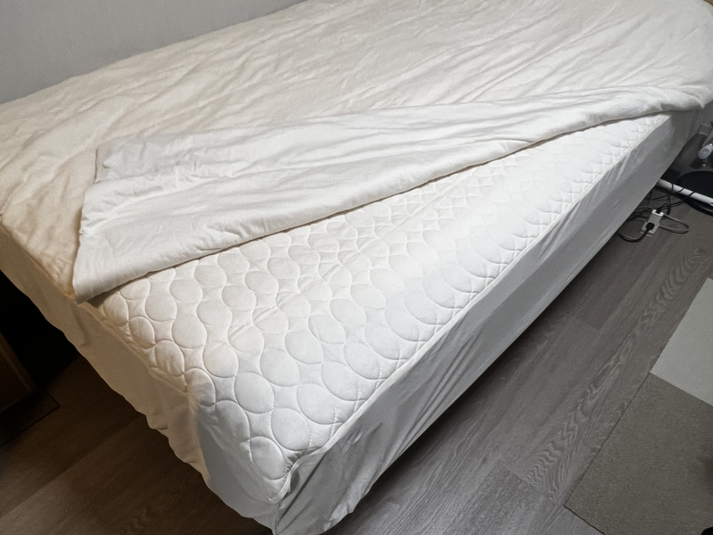 敷きパッドとセットで買ったので、見た目も統一感があっていいです。