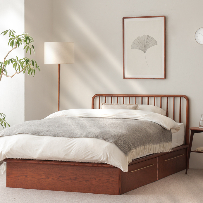 ウールのブランケットは、秋冬の寝室コーディネートのアクセントとして大活躍。
