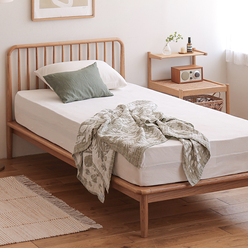 そのため、一日の疲れを癒す寝室のインテリアとしてぴったり。ベッドに掛けておくだけで、心地よい眠りへと誘ってくれそうですね。