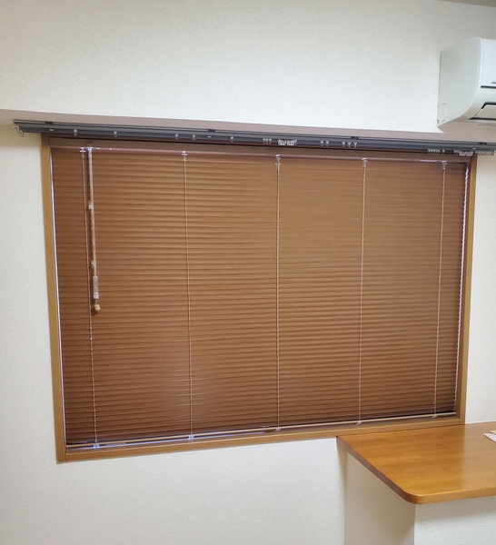 そんななか私たちが検討を重ね、今回採用したのは施工不要で取付けられる「アルミブラインド セレーノグランツ25 テンションタイプ」。こちらは、上質で温かみのある木目調を揃えたウッドカラーです。