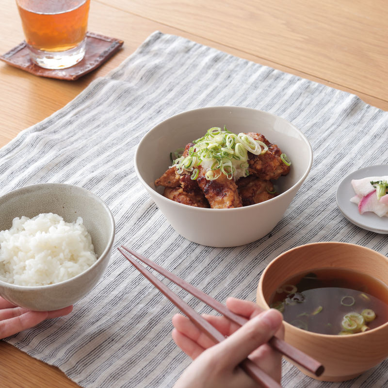 パキッとしすぎない白だから、毎日気兼ねなく使えます。どんなお料理にも合わせられる定番カラーです。