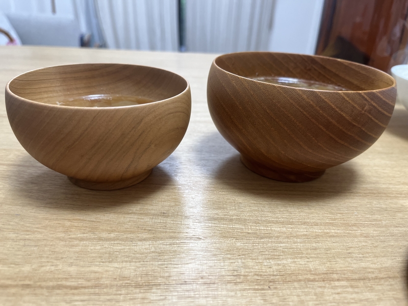 お椀に口をつけると、陶器や磁気には無い、優しい木の温もりが伝わってきます。いつものお味噌汁やお吸い物でも、めいぼく椀でいただくと「あぁ、日本に生まれてよかったな」なんて、ちょっと大袈裟な気持ちになるんです。