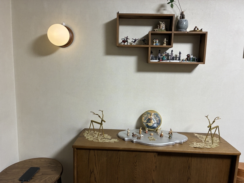 窓と出入り口の間の限られたスペースですが、「Lumoa」を使ってディスプレイを楽しむことができています。
