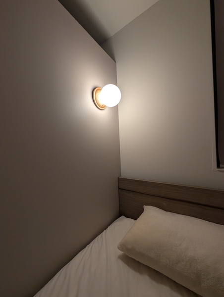 壁にひとつあかりがあるだけで、ホテルの一室のような特別な空間を演出できます。