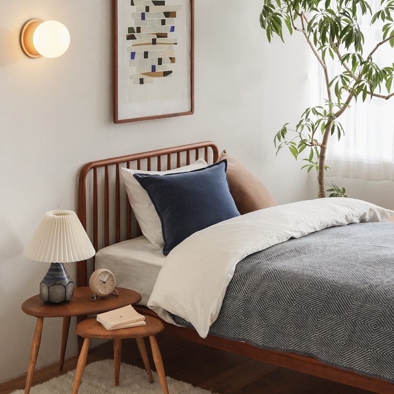 ベッド上を彩るアイテムとしての役割も担い、お部屋が上質な印象に。