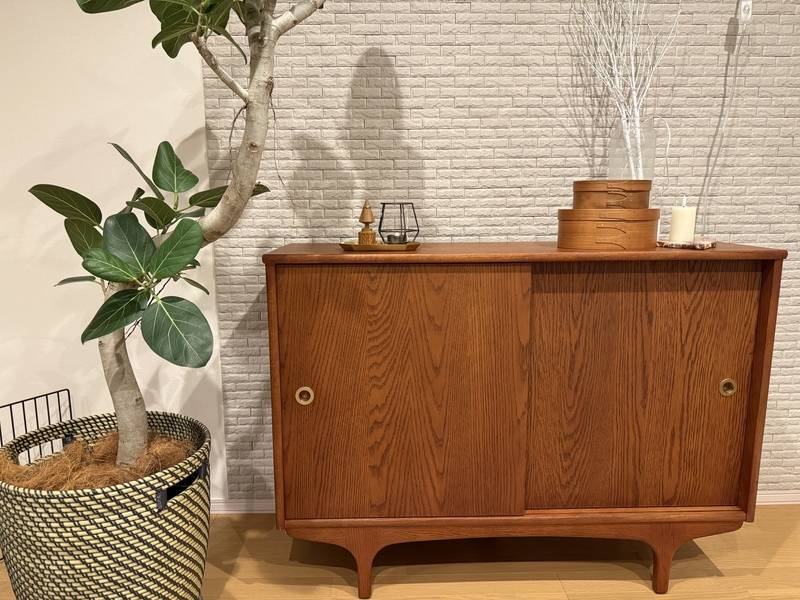 多くのサイドボードは、奥行き「40cm~45cm」ほどで、設計されています。サイドボードとして人気の「北欧アンティーク」も、ほとんどがこのサイズです。