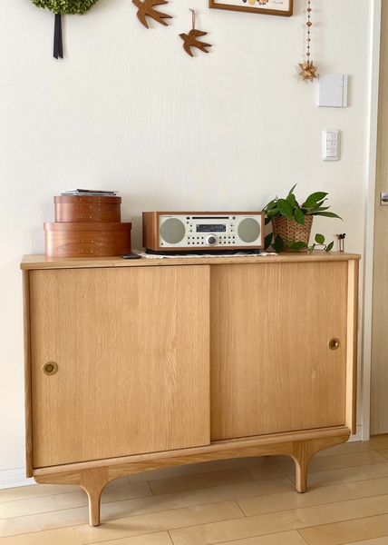 TVボードがお気に入りのヴィンテージのためなかなか色味が合ういい感じのがなかったのですが、こちらはヴィンテージ感ある色味とスマートな形がめっちゃお気に入りです。