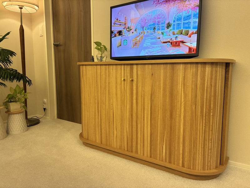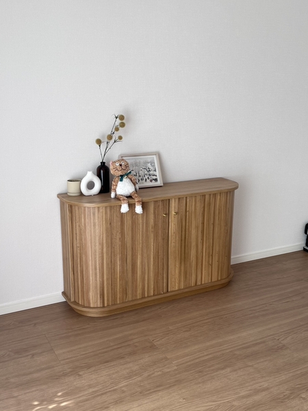 大抵の場合、キャビネットの横顔は、四角く無表情なものが多く、角が立った姿は、美しさが減るとともにお部屋に感じる緊張感の原因にもなります。