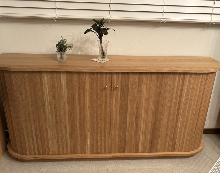 柔らかな曲線と、低く抑えた高さによって、これまでのサイドボードとは一線を画した「美しさ」を表現したのが、この新作キャビネットなのです。