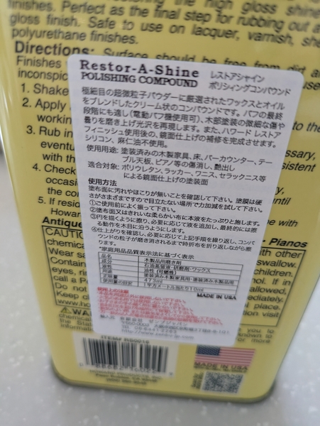 アメリカ生まれの「ポリッシングコンパウンド HOWARD(ハワード) レストアシャイン 473ml」は、塗装された家具の表面を、磨き削る研磨剤です。