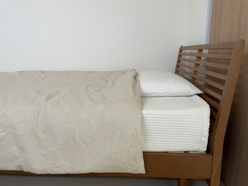 そのため、大きな面積を占めるベッドリネンはホワイトやナチュラルなどシンプルなものを選んだ方が、失敗が少なく整った印象になります。
