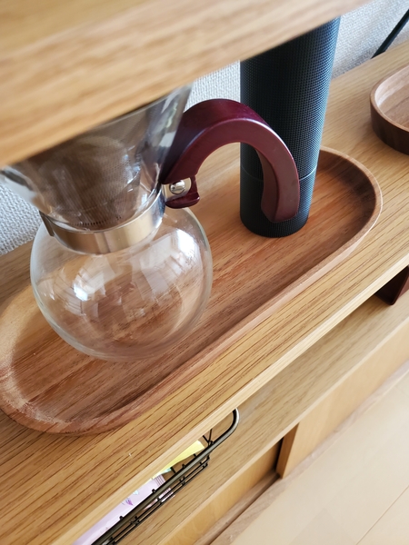 こちらは3つ分の幅のLサイズ。コーヒー豆、シリアル、砂糖など、朝食で使うものをまとめてのせています。