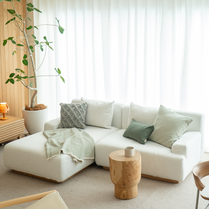 たとえば、「1.5人掛け」「1人掛け」「カウチ」をすべて組み合わせると、開放的なロングカウチに。